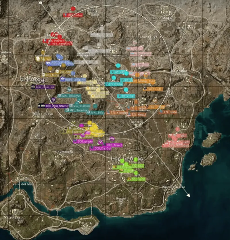 本局决赛圈位于北侧山顶附近。